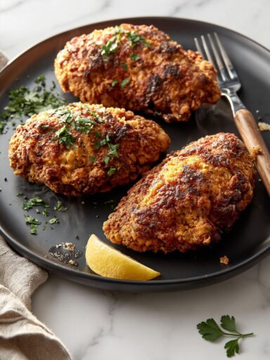 - Pan-sear the chicken breasts until golden and cooked through.