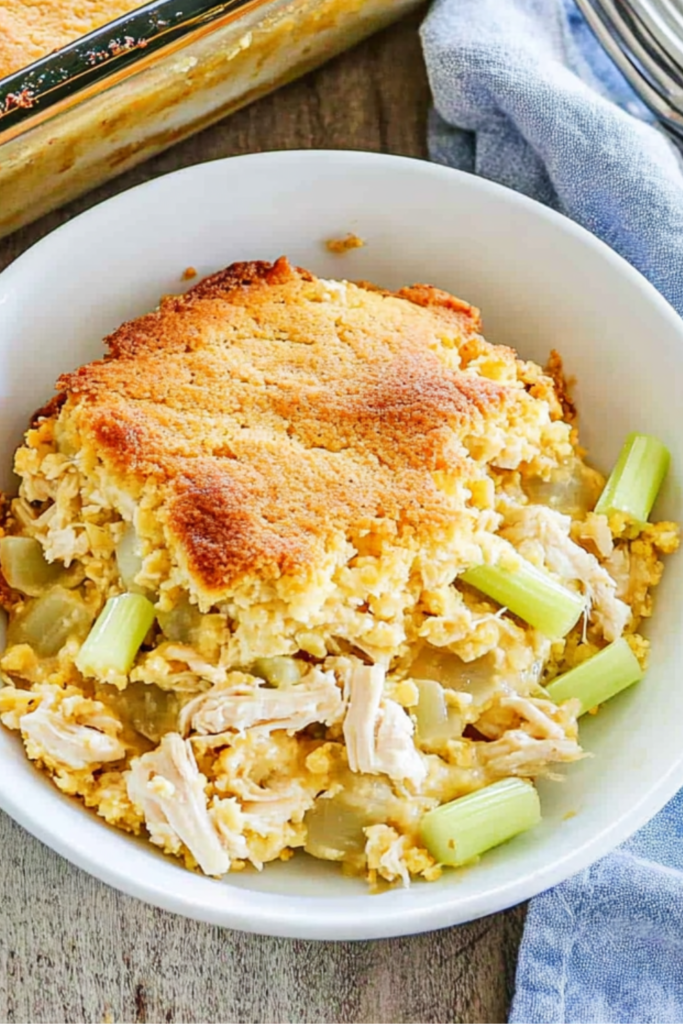 kcalCreamy chicken and tender veggies baked under a buttery cornbread crumble—an easy, crowd-pleasing casserole for busy nights.