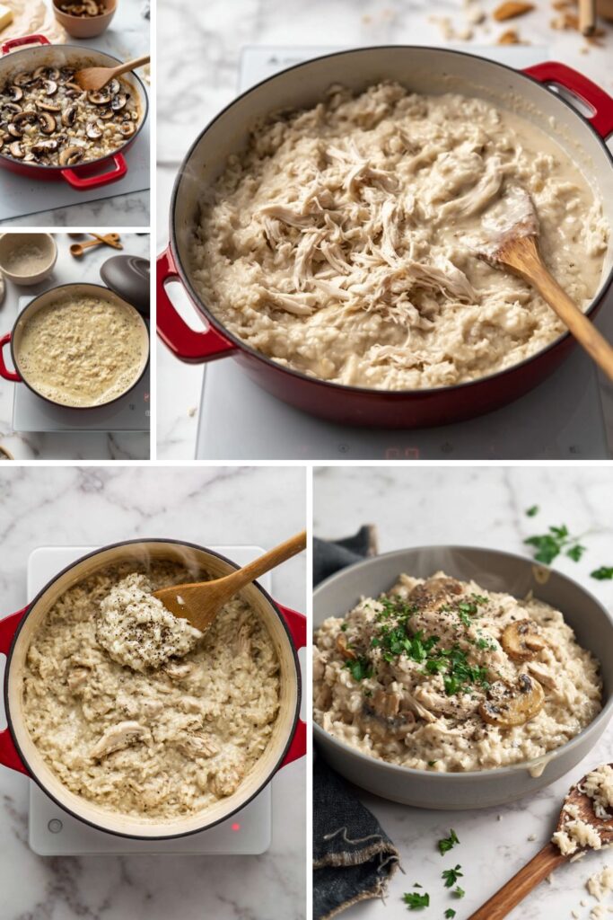 kcalA thick and creamy one-pot chicken dinner with tender jasmine rice and buttery sautéed mushrooms.