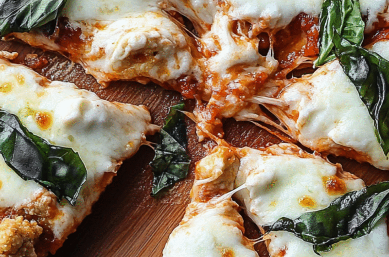 This Chicken Parm Pizza Recipe is a cheesy and fun recipe, which is made with fresh mozzarella and a crispy chicken “crust.” It’s a fantastic low-carb twist on a classic, ready in about 30 minutes.