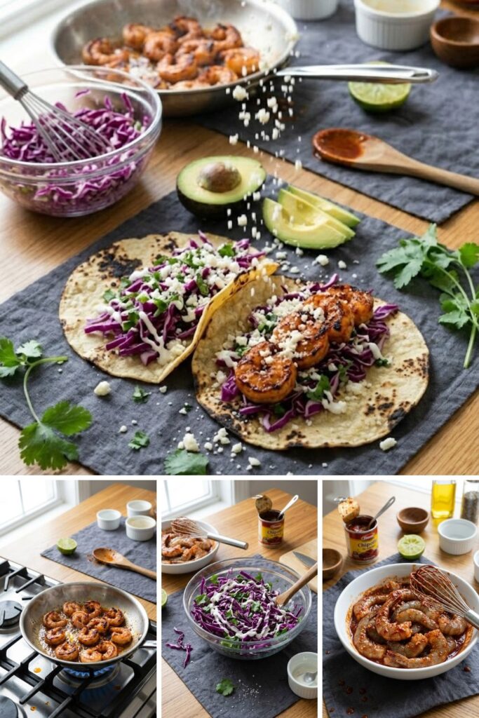 minutesSmoky Chipotle Shrimp Tacos Recipe featuring juicy marinated shrimp and crisp cabbage slaw, ready in just 25 minutes. This easy weeknight dinner delivers bold restaurant flavors using simple pantry staples like chipotle peppers in adobo.