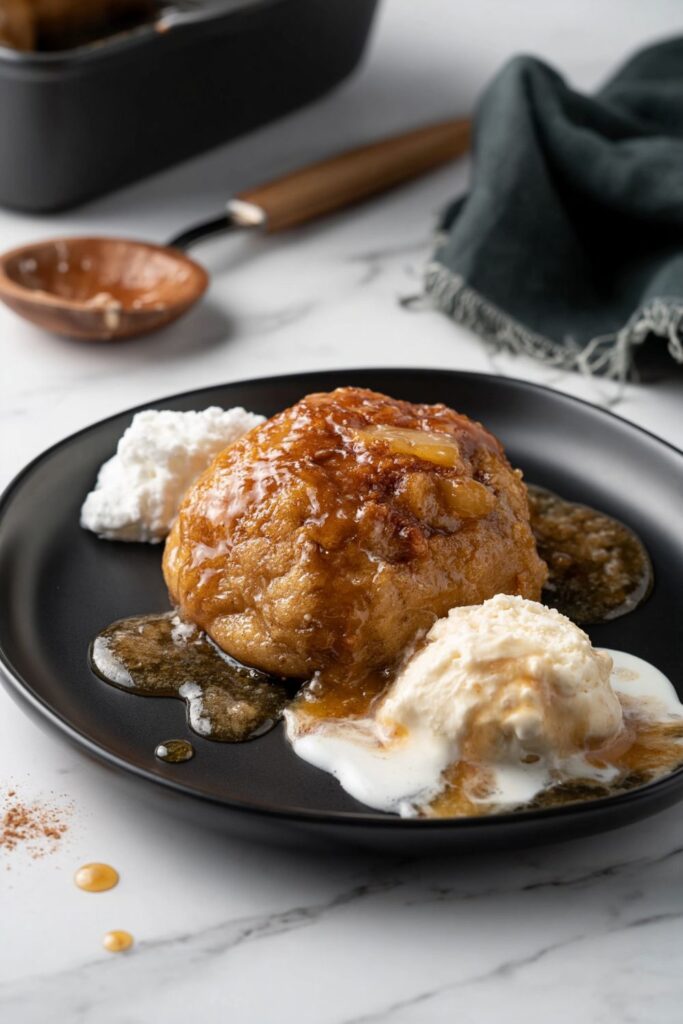 - Bake to perfection: Bake for 30-45 minutes until the dumplings turn deep golden brown and the liquid bubbles into thick syrup.