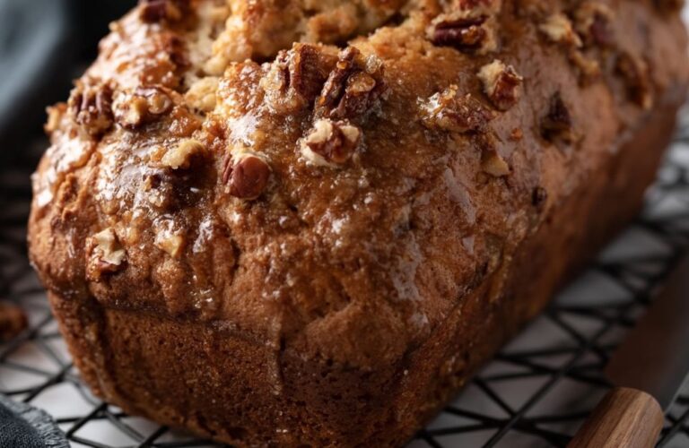 Cracker Barrel Apple Praline Bread Recipe is a classic American fruit loaf. This moist cake uses sour cream, crisp apples, and crunchy pecans with a rich buttery glaze.