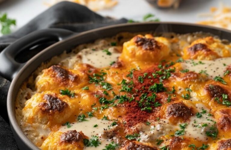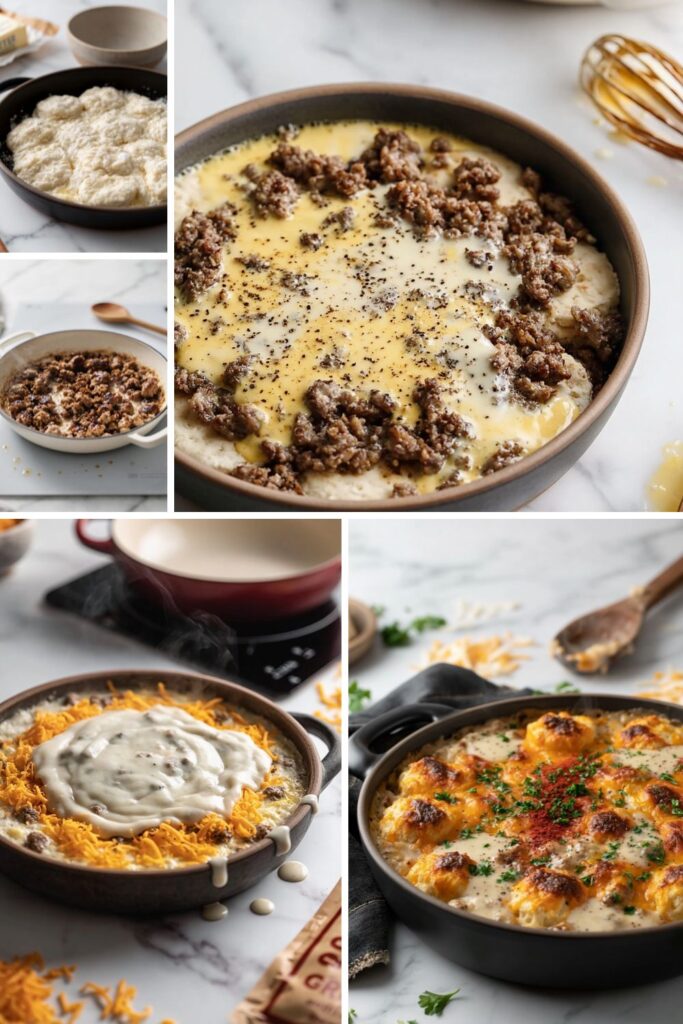 Cracker Barrel Biscuits and Gravy Casserole Recipe is a hearty American-style breakfast bake featuring peppery sausage gravy and buttermilk biscuits. This comforting morning dish uses sharp cheddar cheese and fresh eggs to create a filling, layered casserole.