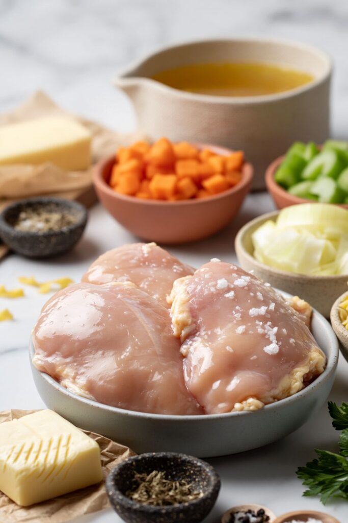 If you do nothing else, make sure you don’t overcook the chicken during the poaching stage. The first time I made this, I let the broth boil too hard and the meat ended up tough and stringy. Now I keep the liquid at a gentle simmer so the chicken stays soft enough to pull apart easily with a fork.