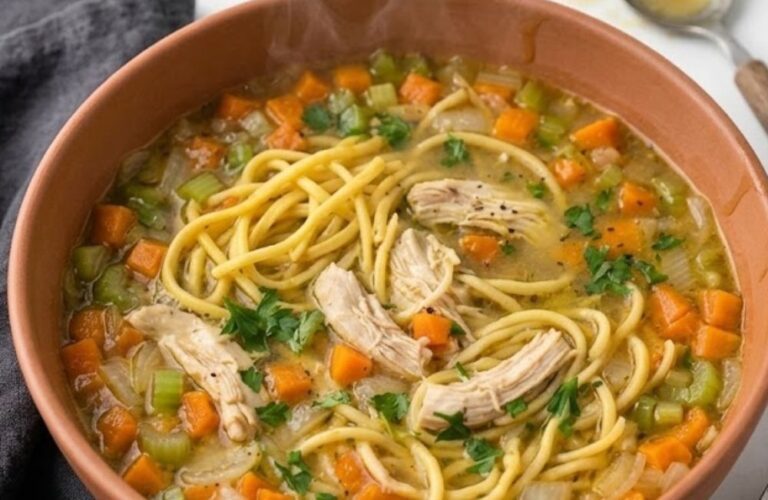 Cracker Barrel Chicken Noodle Soup Recipe is a classic American bowl of warmth featuring tender shredded chicken and thick egg noodles. This hearty lunch uses a base of golden chicken broth, diced carrots, celery, and onions simmered with yellow butter and dried thyme.