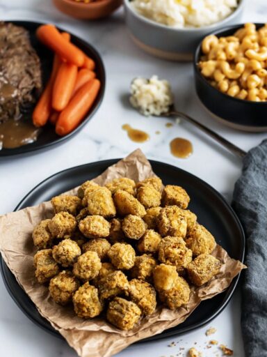 Air fryer chicken tender accompaniments are traditional Southern sides that create a wholesome and satisfying “country-store” meal. Ideally the green beans should be slow-cooked with a piece of salt pork or bacon to provide a smoky, savory balance to the citrus-glazed chicken.