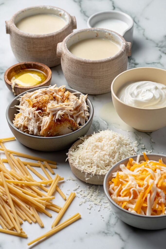 The sour cream is doing more work than you’d think here. Without it, the canned soups can taste a bit flat and overly salty, but that tang cuts through the richness beautifully. This recipe is one of those that looks harder than it is. The whole thing comes down to making sure every strand of pasta is coated before it hits the baking tin. It has become a Sunday night staple in my house when I have leftover chicken to use up.