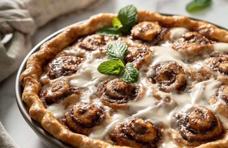 Cracker Barrel Cinnamon Roll Pie is a southern-inspired dessert featuring spiral buns baked inside a flaky pastry shell. This hybrid treat uses ground cinnamon, brown sugar, and a sweet icing drizzle to create a hearty family-style bake.