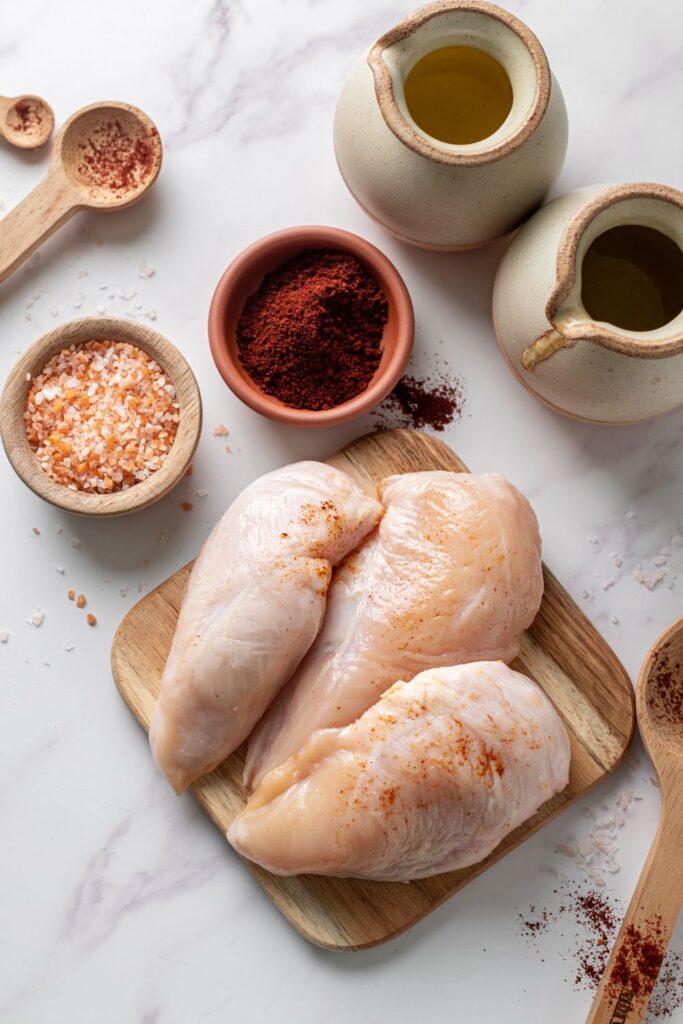 - Season the meat: Mix the seasoned salt and smoked paprika in a small bowl and rub the blend into both sides of each cutlet. Let the chicken sit on the counter for 10 minutes to allow the spices to stick to the surface.