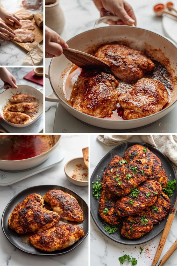 kcalThin chicken cutlets seasoned with a smoky spice blend and seared in a hot pan for a charred, juicy finish.