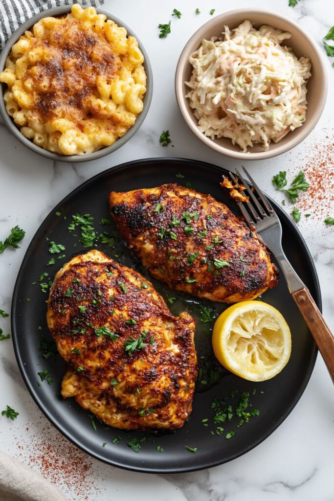 This chicken is robust enough to pair with heavy sides like mac and cheese or buttery mashed potatoes. I often serve it alongside a crisp green salad or some steamed green beans to balance the smoky spices.