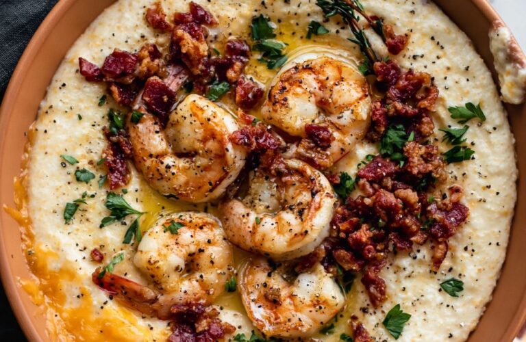 Cracker Barrel Southern Shrimp and Grits Recipe is a classic American comfort dish featuring stone-ground grits and jumbo shrimp. This hearty meal uses sharp cheddar cheese, crispy bacon, and a rich butter sauce to create a soul-warming dinner.