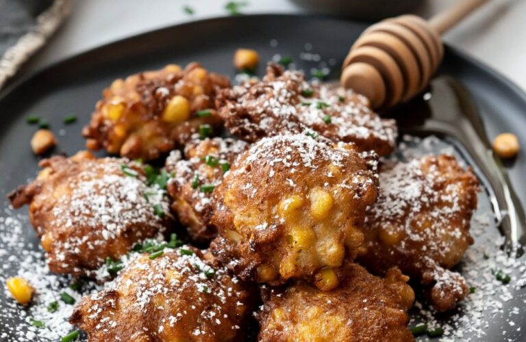 Cracker Barrel Sweet Corn Fritters Recipe is a classic American side dish or snack. This recipe combines golden corn kernels, fresh chives, and a hint of cayenne pepper in a crisp, fried batter.