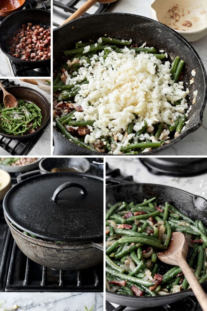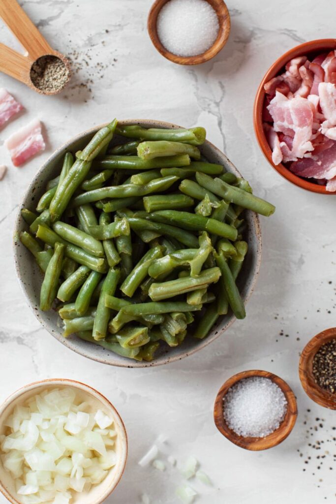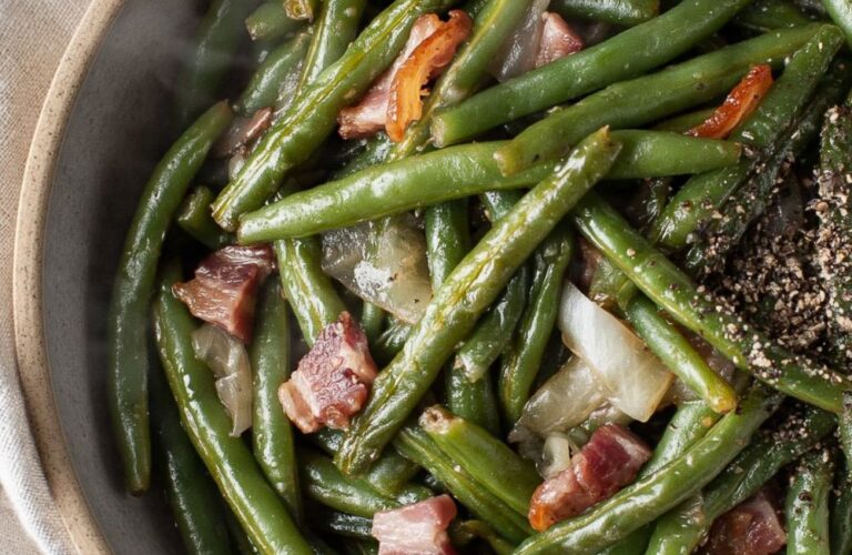 These beans are doing more work than you’d think to balance out a heavy meal. Without the small amount of sugar, the saltiness from the bacon and canned liquid can be overwhelming. I usually serve these alongside a Sunday roast when I want a vegetable that people will actually finish.