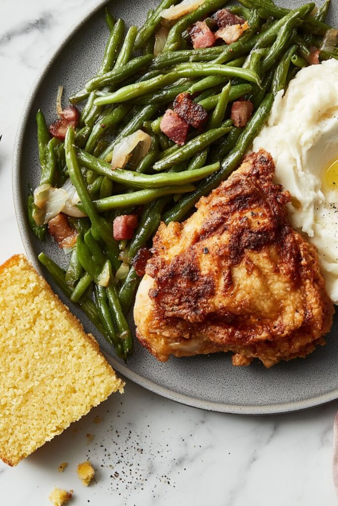 These beans belong next to a pile of creamy mashed potatoes and fried chicken. They also work well with a thick slice of meatloaf or a slow-cooked pot roast.