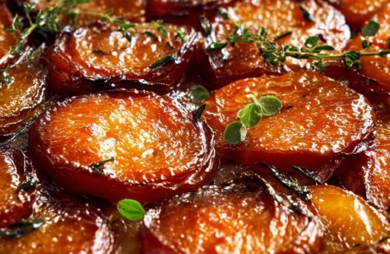 - The Flip: Don’t wait longer than 10 minutes to flip the tart. If the caramel cools too much, it will harden and stick to the glass dish, tearing the vegetables apart.